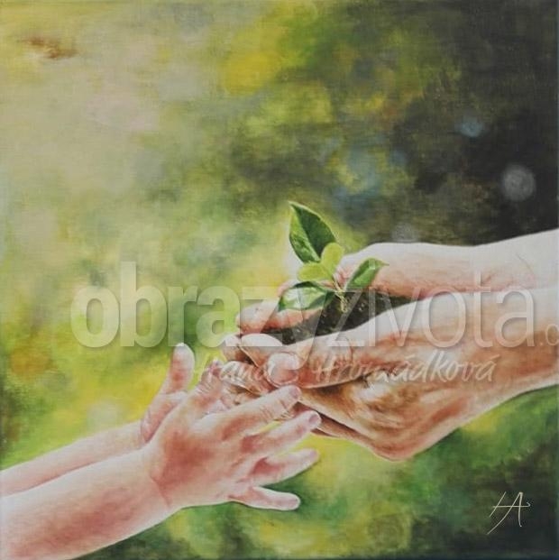 Obrázky jsou malovány pomocí akrylových barev na plátno.